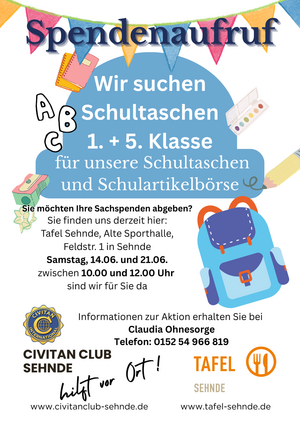 WeiterlesenWir suchen wieder Spenden für unsere Ranzenbörse !